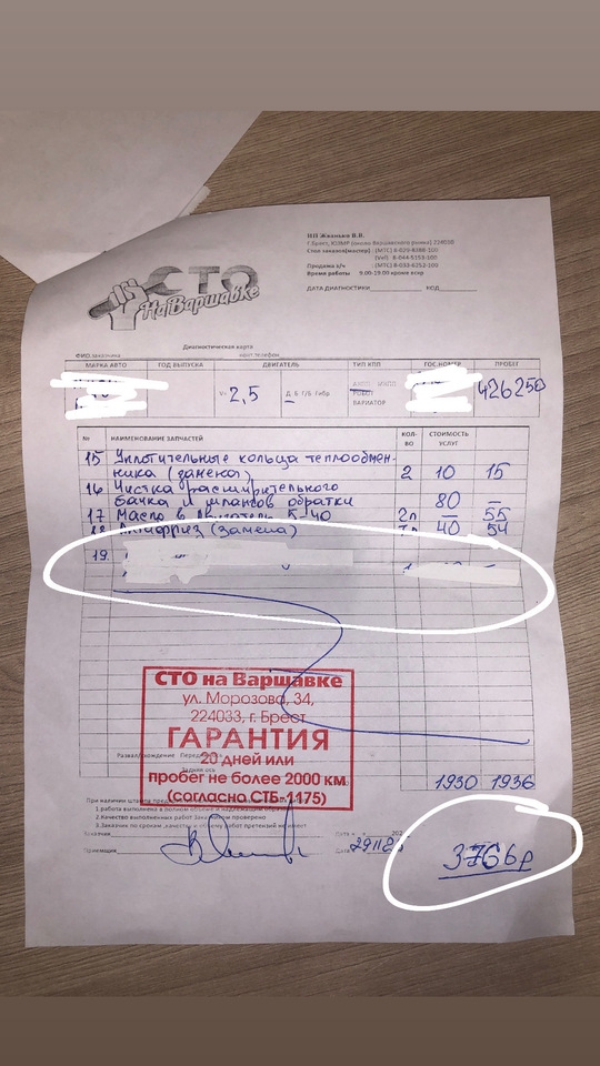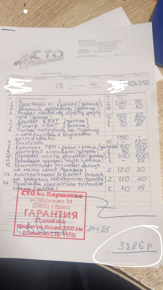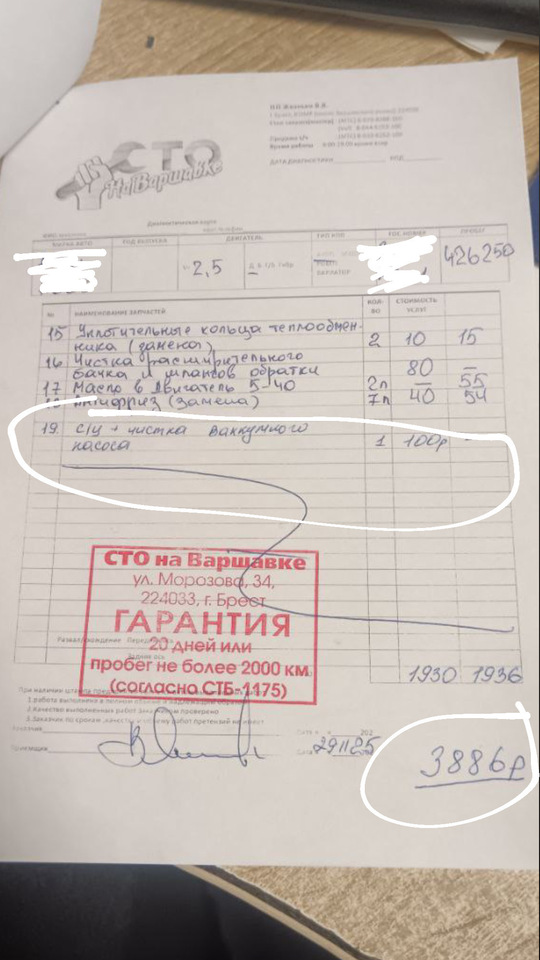 Обращались по одной небольшой проблеме, стоимость озвучили в 300 рублей, спустя время звонят, говорят, что машина уже разобранная стоит на подъемнике(никто не звонил и не спрашивал разбираем машину или нет, поставили перед фактом). Собравшись с мыслями, сказали, что ничего делать не нужно, собирайте назад. В ответ было услышано, много глупых, необоснованных выражений в грубой форме. Так из 300 рублей в 3,800. По телефону хамят. Так же делают работу, которую делать никто не просил (с/ц + чистка вакуумного насоса; 19 пункт на фото). Было оговорено, что делать это не нужно. Ставят перед фактом, что сделали и берут за это деньги. В итоге за это не платили.